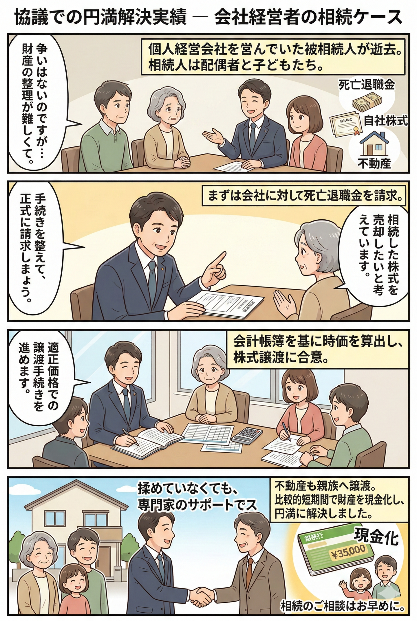 その際,会社の役員から被相続人の所有していた株式について買い取りたいとの希望がありました。